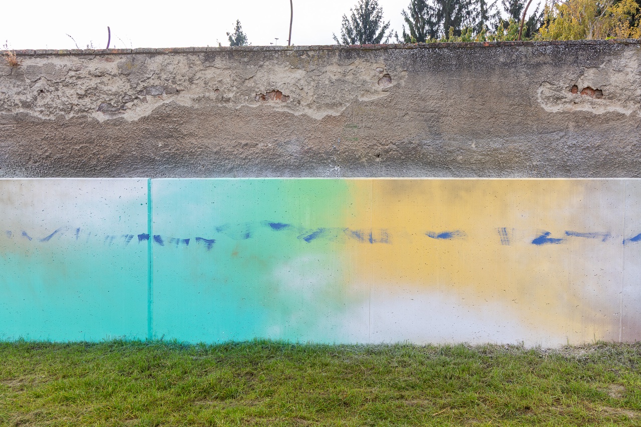 Náplavka se vybarvila – a nemáme teď na mysli jen podzimní listí. Jeden úsek protipovodňových stěn nově zdobí abstraktní malba Michaely Mráčkové zachycující zvuky řeky a okolí.