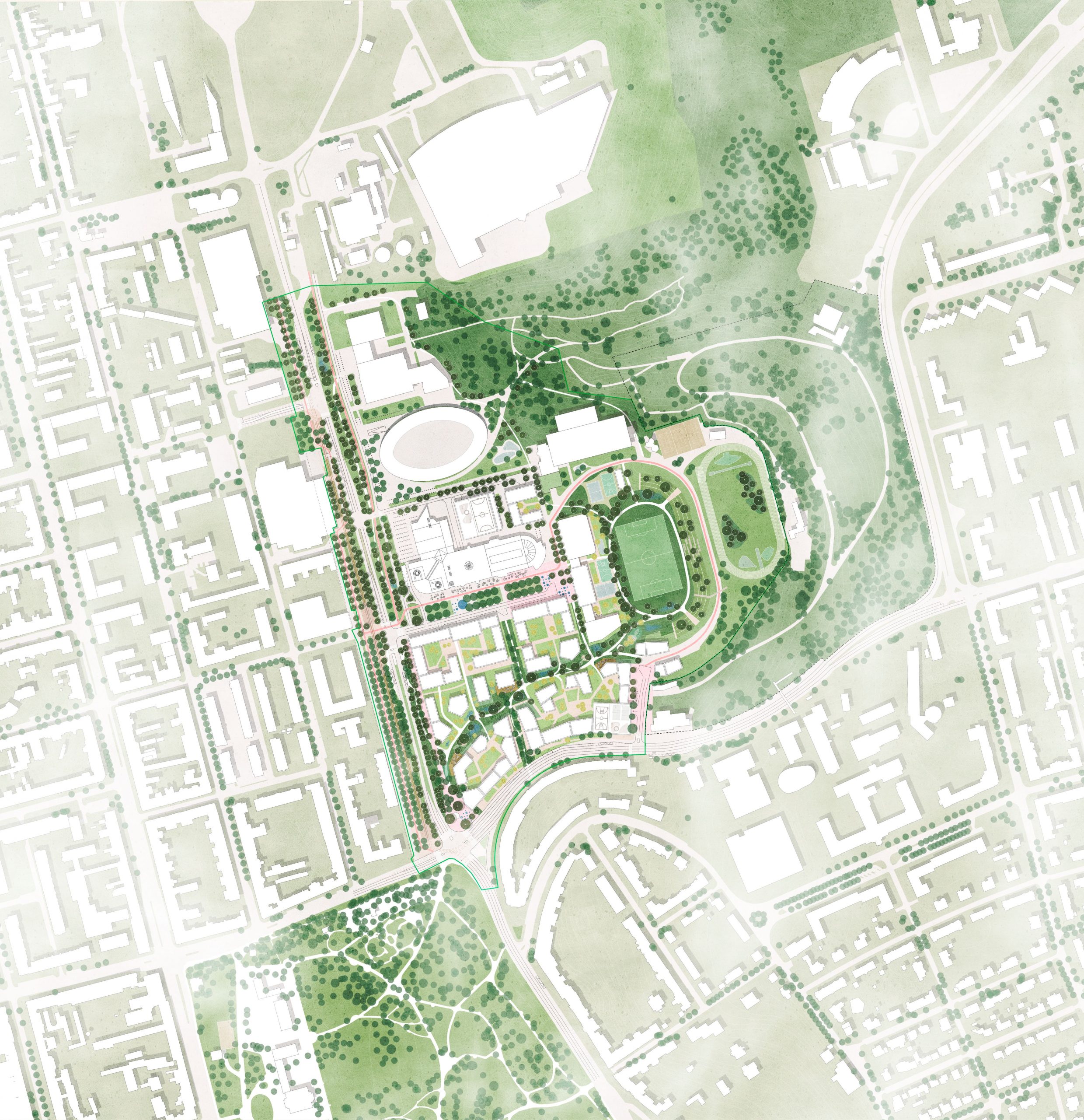 Pro vítězný tým bauchplan ).( bylo hlavním úkolem najít novou identitu řešené části Ponavy a zároveň zachovat respekt k její historii a současnému dědictví. Oblast se v jejich očích může stát vzorem pro odolné sousedství dneška, které je postavené na třech pilířích udržitelnosti – sociálním, environmentálním i ekonomickém. Z někdejší ikony stadionu se může stát zelené lokální centrum, které podporuje kvalitní každodenní život a nabízí sportovní vyžití celoměstského měřítka. Nekonečná parkoviště se mění na různorodou městskou čtvrť s výrazným krajinářským řešením, jehož cílem je zlepšit klimatickou odolnost města a navázat na současného genia loci.