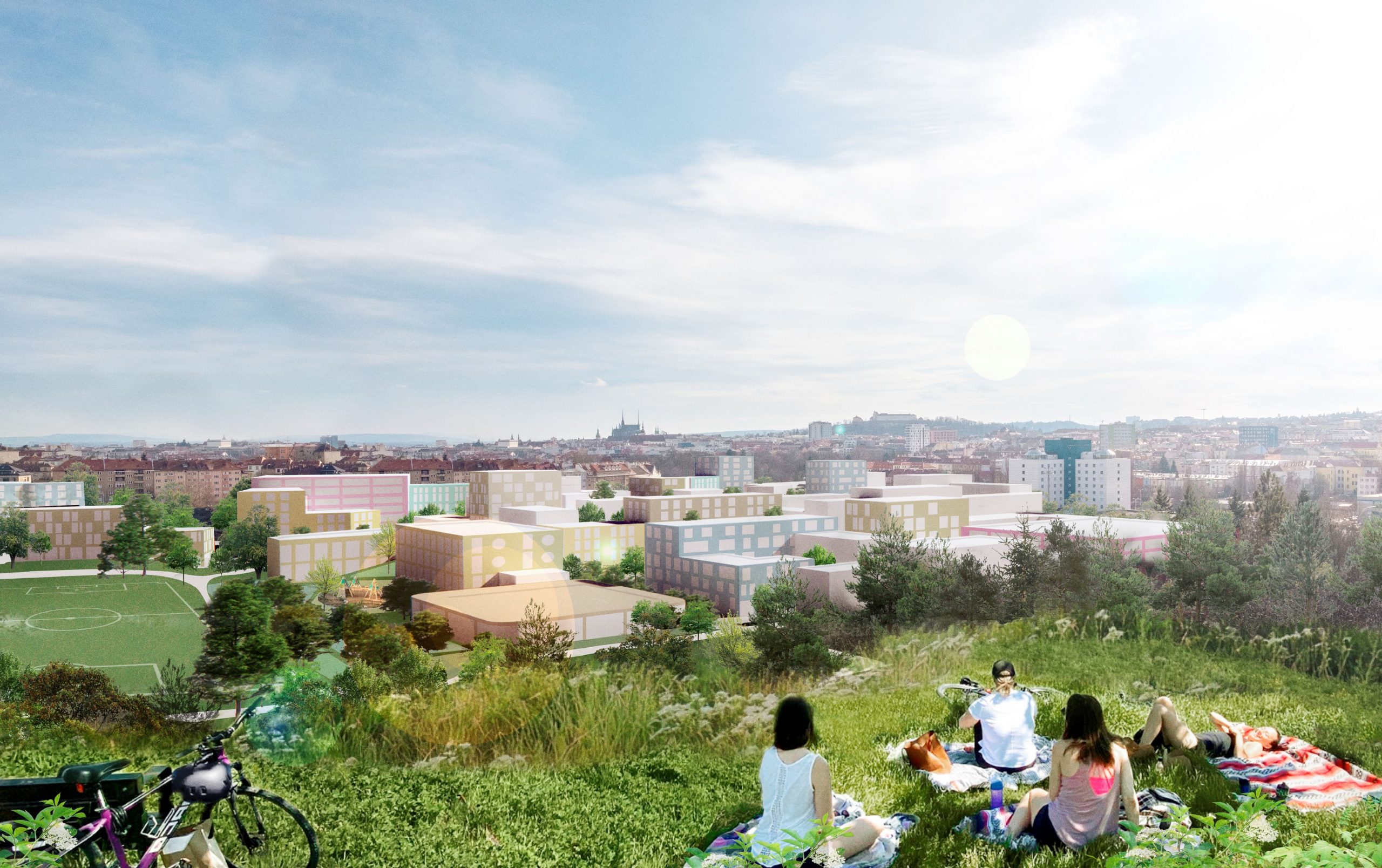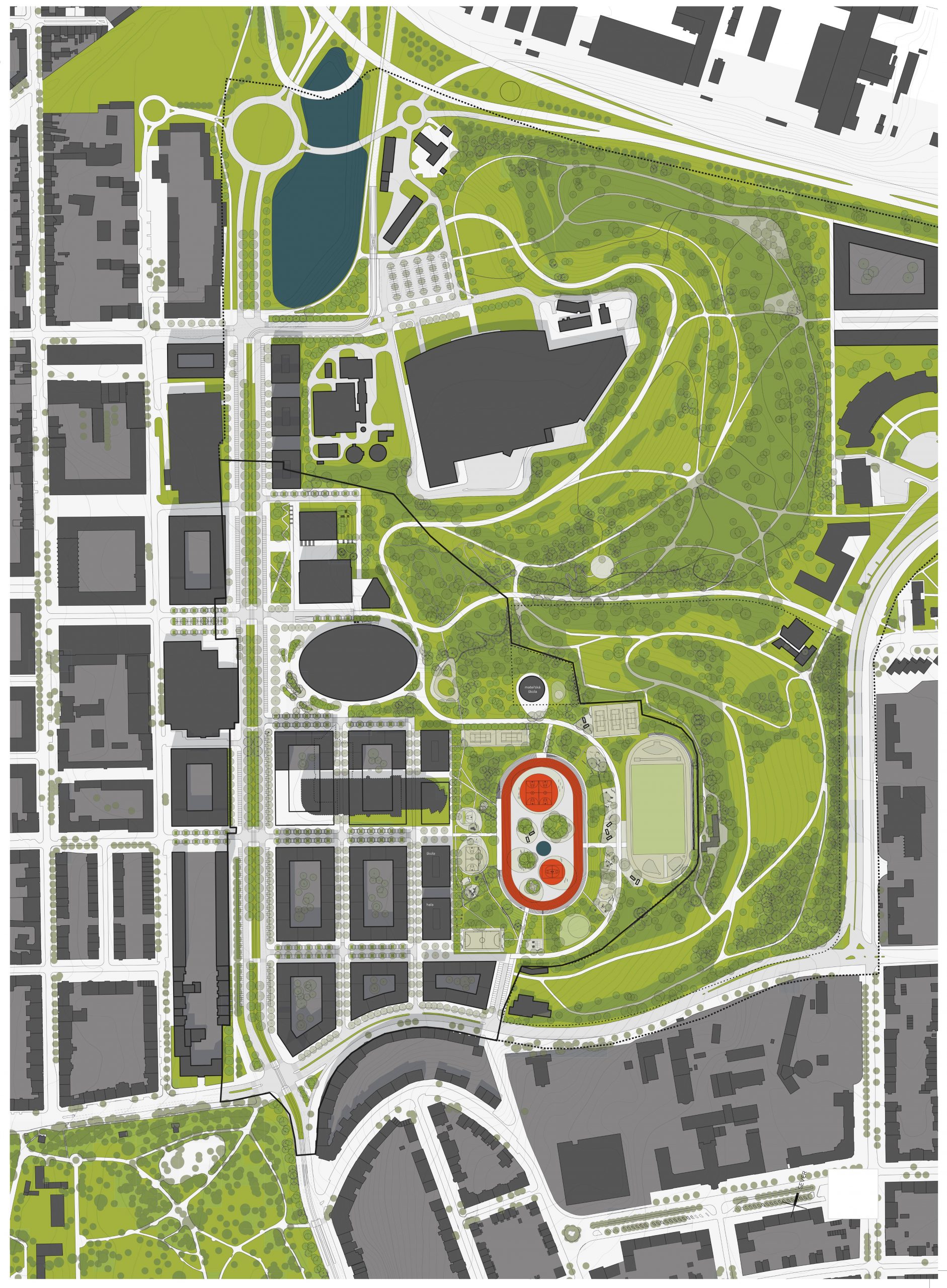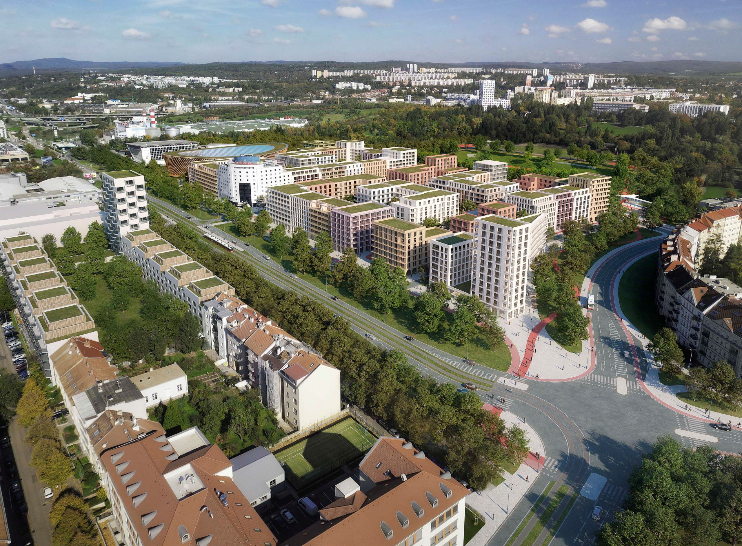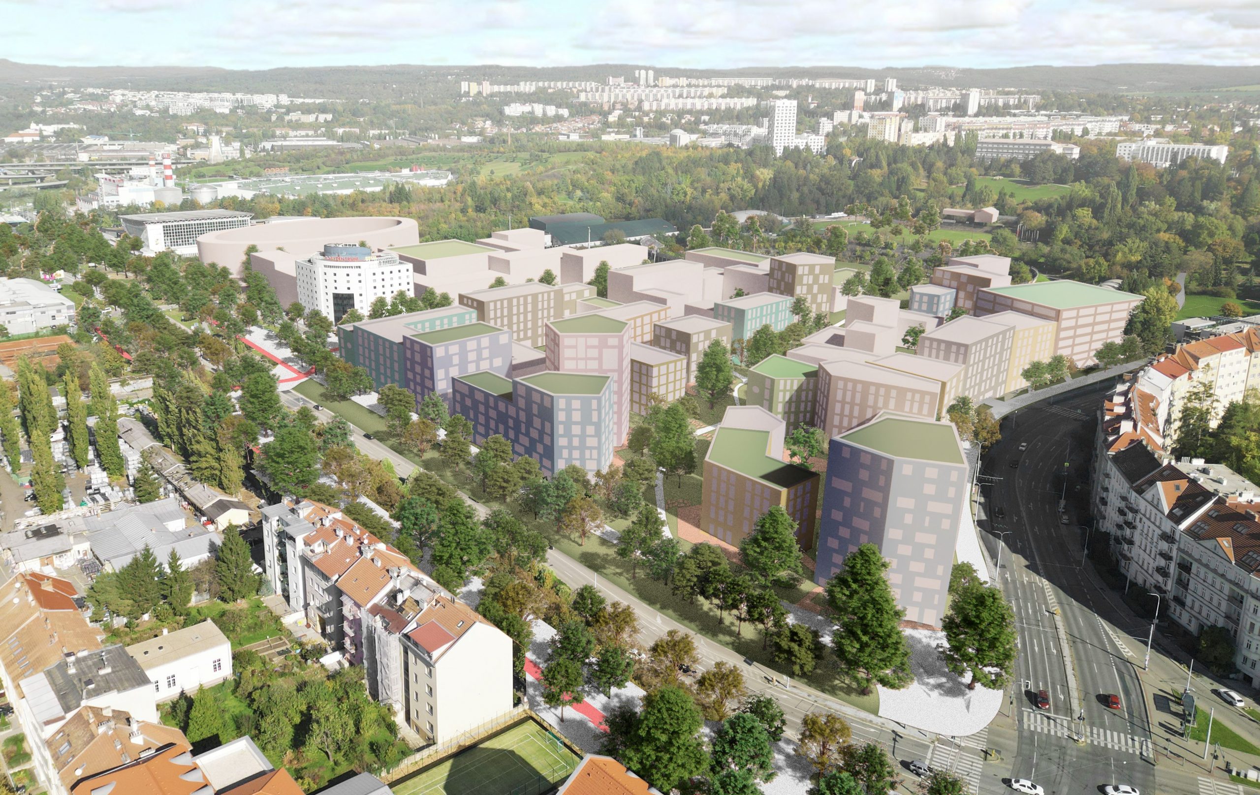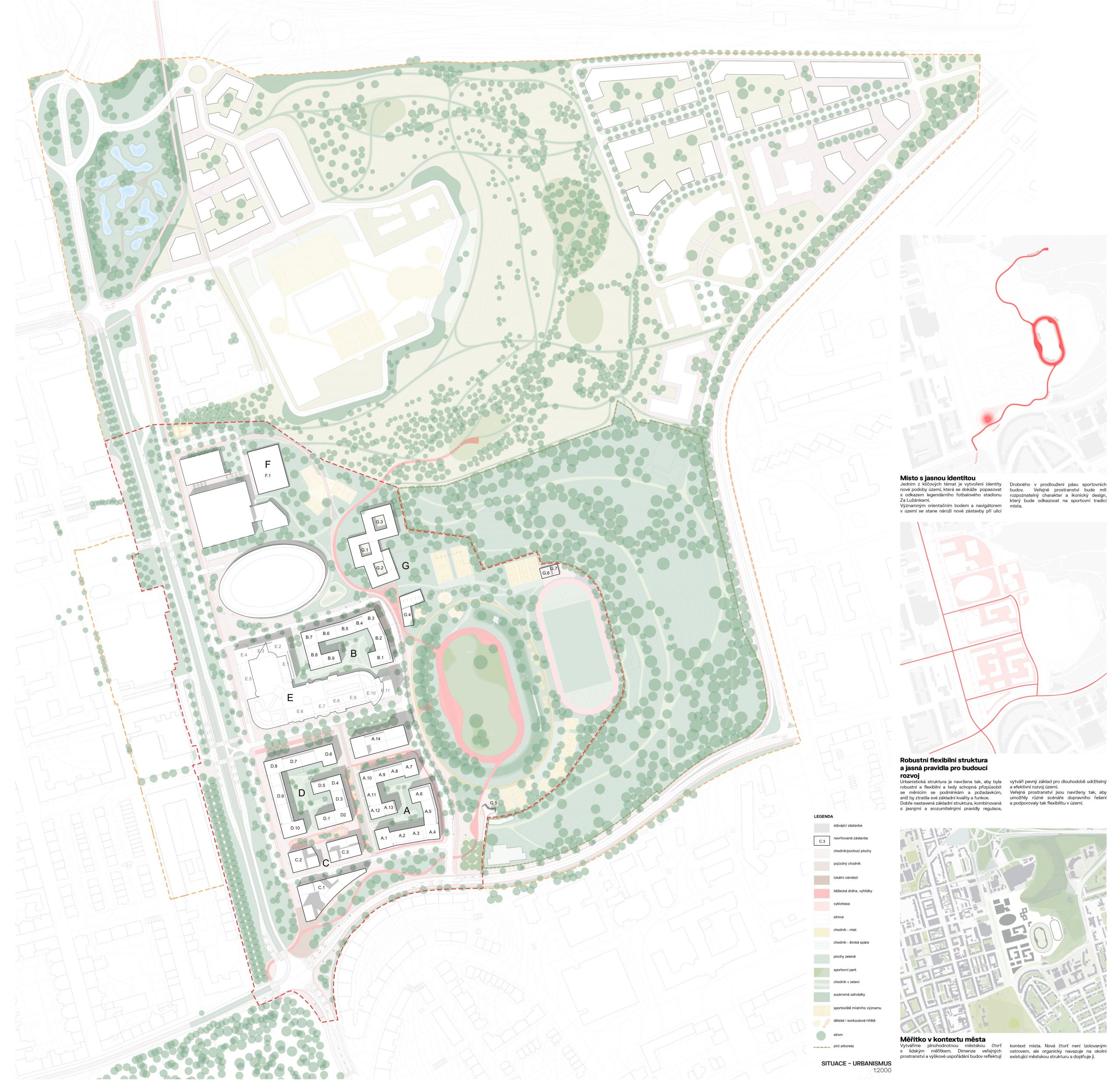 „Vítězný návrh nabízí funkční rozvoj struktury, který plně respektuje moderní požadavky na kvalitu bydlení ve městě, tedy město kompaktní, město krátkých vzdáleností s důrazem na vztah k životnímu prostředí. Navrhovaná urbanistická struktura vhodně navazuje na kvality stávající okolní zástavby, včetně začlenění hotelu Bobycentrum a tenisových hal. Autorský tým zde přichází s plánem kvalitního a udržitelného bydlení, zejména dostupného družstevního a městského. Návrh také pracuje s plochou bývalého stadionu, kterému vzdává hold zanecháním jeho půdorysné stopy a významného přístupu z ulice Sportovní, tvořící v návrhu kompoziční osu. Počítá také s veřejnou vybaveností, a to formou volně přístupné sportovně-rekreační zóny. V současné době je tato plocha opětovně prověřována pro umístění nového fotbalového stadionu a bude na autorech návrhu, aby vyhodnotili, zda bude jejich koncepce plně funkční i v případě výstavby kapacitního stadionu,“ doplňuje další pohled Petr Bořecký, radní města Brna pro oblast územního plánování a člen odborné komise.